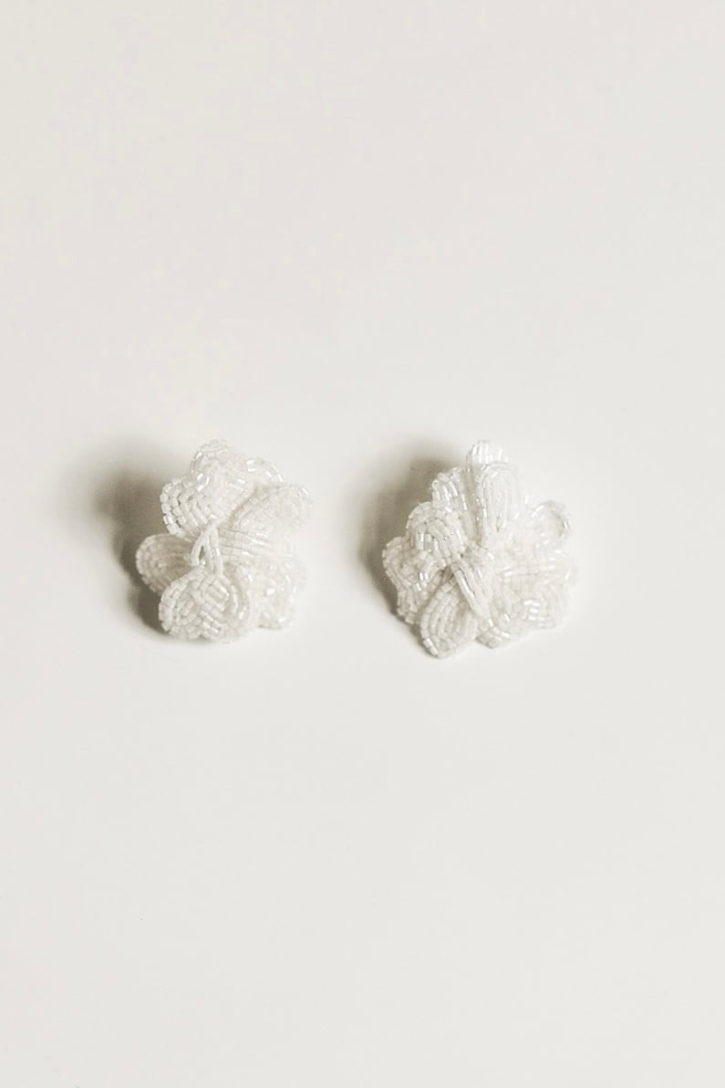 細かいビーズを丁寧に刺繍した、芸術的で贅沢なピアス。